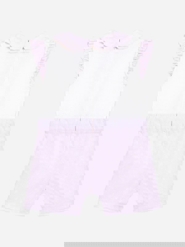 The embroidery adds decorative texture and a distinctive look, while the romper format keeps the outfit as a single, coordinated piece.