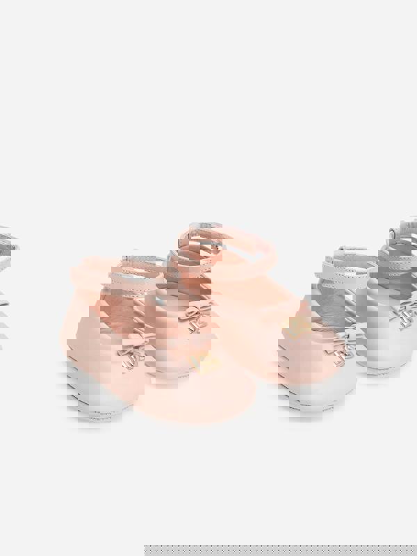 These Dolce & Gabbana baby girls pre-walker pumps come in pink nappa leather, finished with the DG crossed logo. Made in Italy, the ballerina-style flats combine a leather outsole with a leather insole customised with a label. Light gold electroplating adds a metallic accent to the logo customisation.