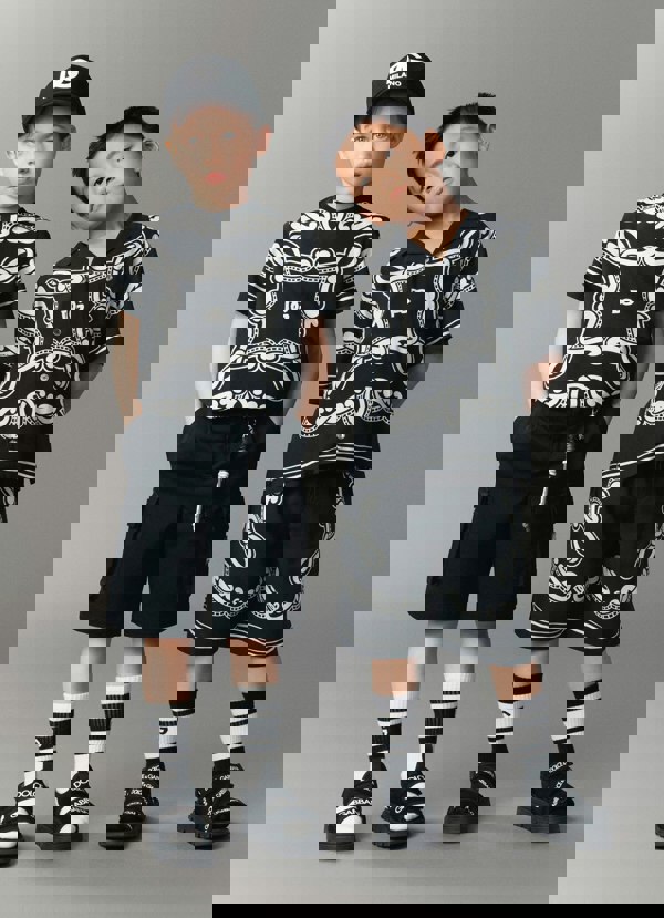 Boys Bandana Bermuda shorts in black from Dolce & Gabbana Kids, made in Italy for the SS2025 collection. The design uses a black bandana motif for a bold, graphic finish.