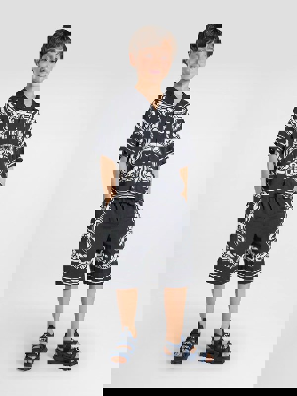 This boys’ shirt by Dolce & Gabbana Kids comes in black with a bandana print. Part of the SS2025 collection, it presents a bold graphic look with a clear designer identity. Made in Italy, it reflects the brand’s Italian craftsmanship and is finished with an all-over bandana design.