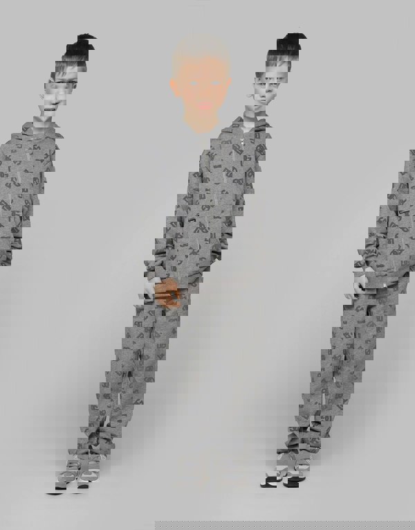 This boys zip-up top from Dolce & Gabbana Kids is made in Italy from 100% cotton jersey. The grey design has an all-over DG logo print, with print placement varying due to the handmade aspect. A hood and front pouch pockets complete the silhouette, while a front zip fastening allows easy wear.