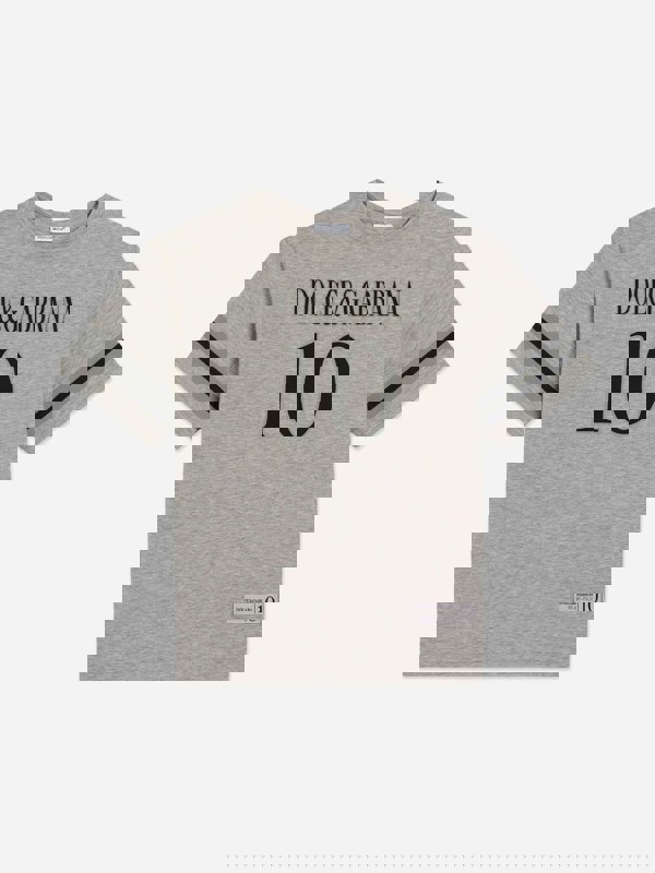 Introducing the Boys Logo Print T-Shirt in Grey by Dolce & Gabbana, an essential addition to your child's wardrobe for SS2025. Crafted with elegance and comfort in mind, this piece transcends everyday attire. Key features include: