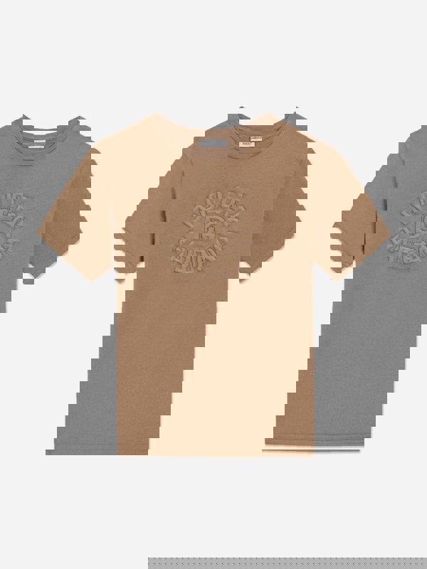 Discover the exquisite Boys Logo T-Shirt in Brown by Dolce & Gabbana, a quintessentially Italian creation poised to enrich your child's SS2025 wardrobe. Each detail embodies luxury and style: