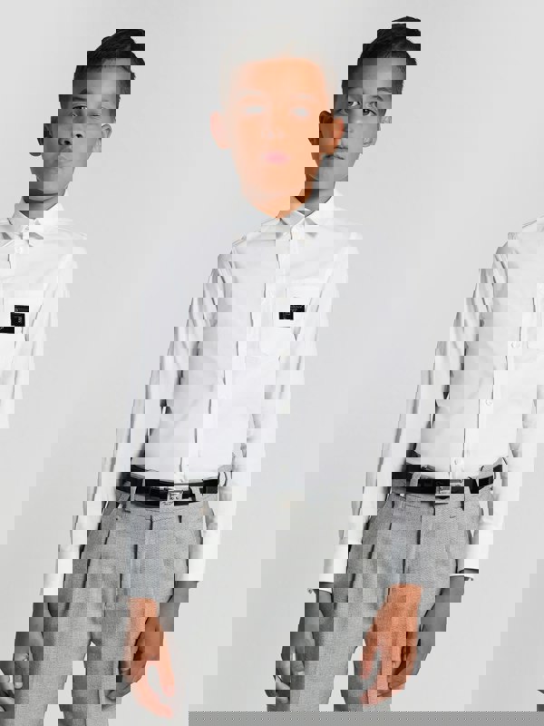 This Dolce & Gabbana Kids long sleeve shirt comes in white and is made in Italy. The fabric blend combines 97% cotton with 3% elastane. A collared neckline and button-down front create a clean, structured finish, while the long sleeves are completed with buttoned cuffs.