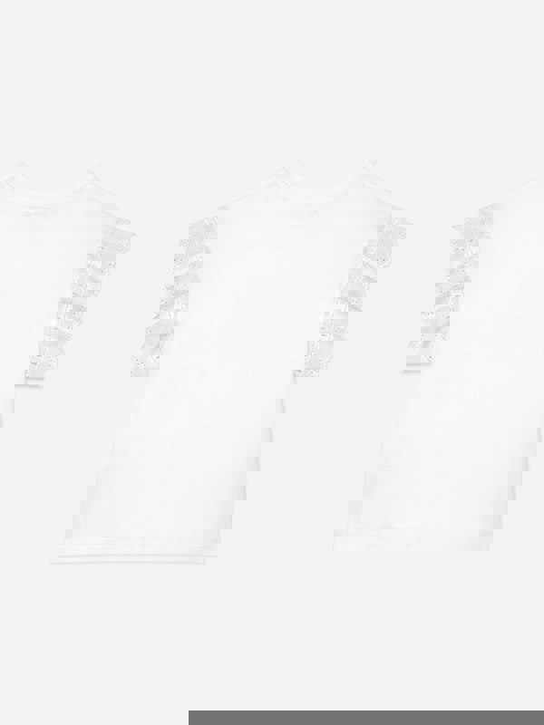 This girls’ cotton jersey T-shirt comes in pure white and is made in Italy. A stretch knit round neck and short cap sleeves keep the silhouette clean, while broderie anglaise and macramé lace details add texture through the trims. An iconic DG logo completes the look.