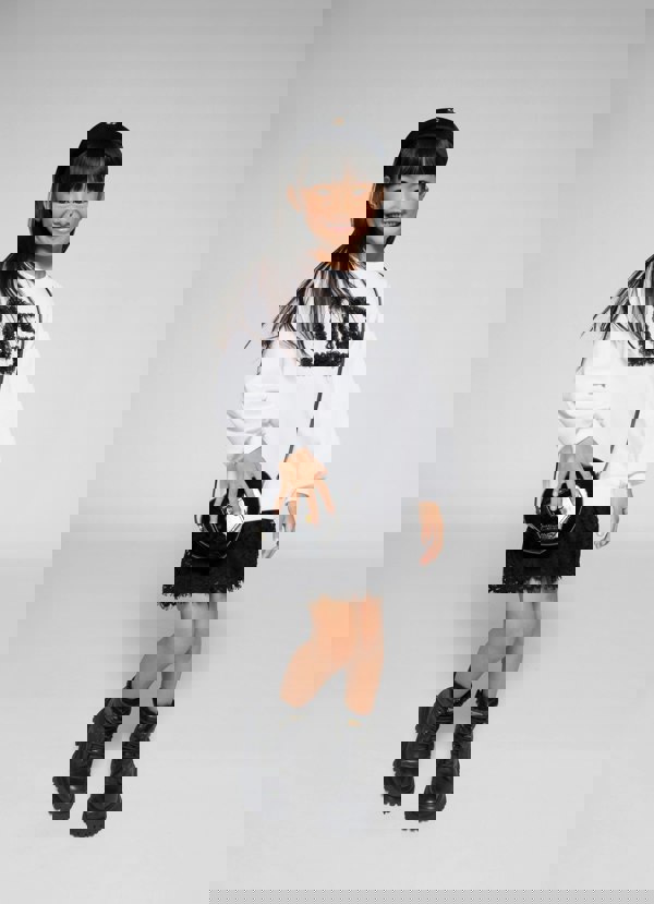 This girls sweater dress from Dolce & Gabbana Kids comes in white cotton jersey blend with lace panelling and floral-lace detailing. A bold logo embellishment sits on the front, adding a clear branded finish. The silhouette is thigh-length and cut with a crew neck and long sleeves for a clean, simple shape.