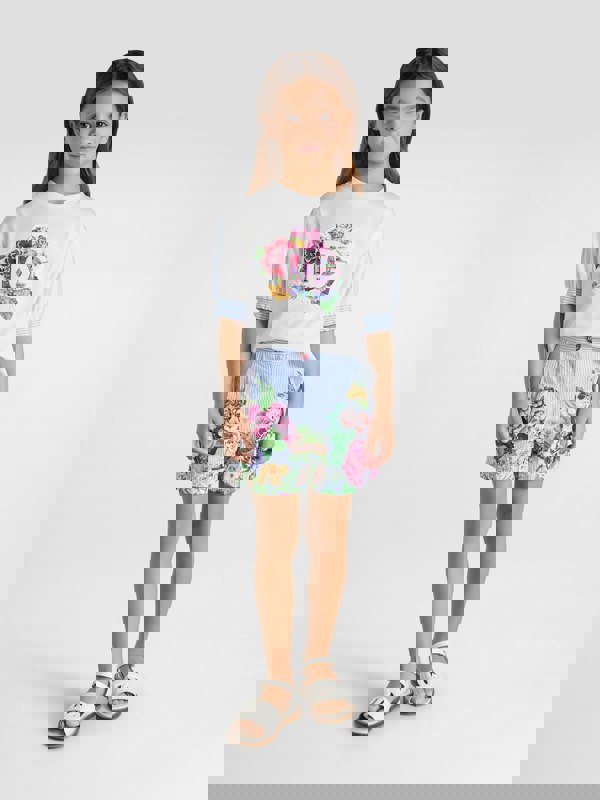 Dolce & Gabbana girls’ shorts in multicolour, finished with a striped and floral motif. This piece forms part of the SS2025 collection and is made in Italy.