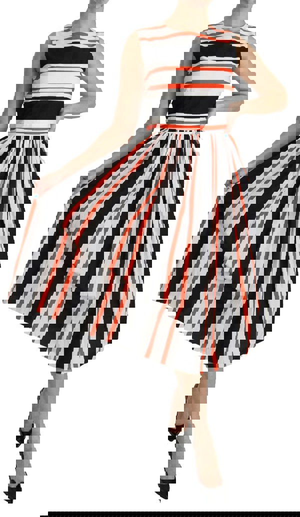 Dolce & Gabbana Striped Cotton Midi Dress - Black White Red