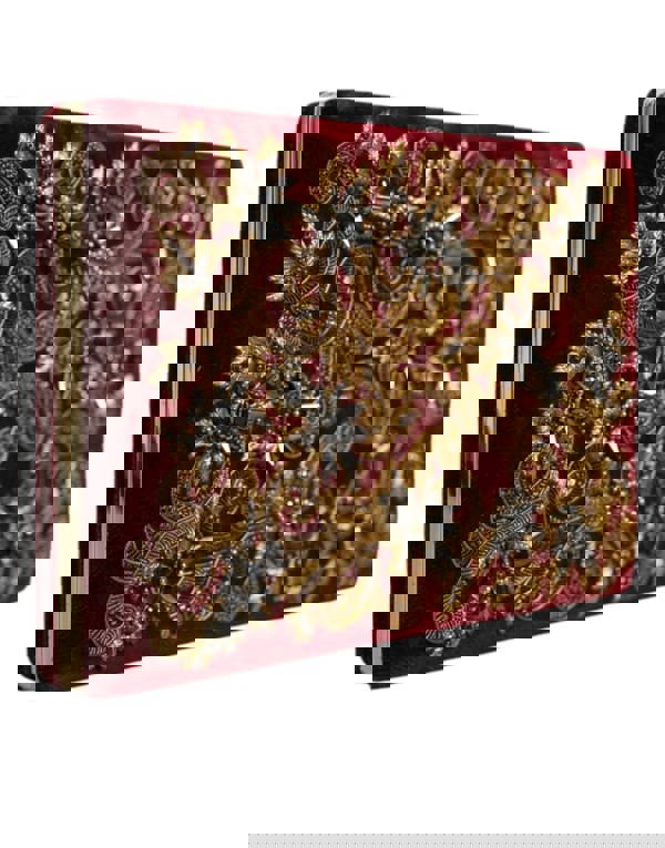 • Red with gold metal detailing