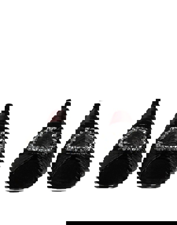 Dolce & Gabbana Women's Crystal Ribbon Velvet Loafers with Gold Metal Heel