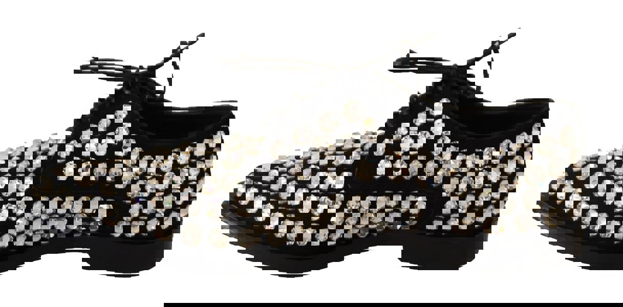 Dolce & Gabbana Women's Elegant Crystal-Embellished Lace-Up Leather Flats