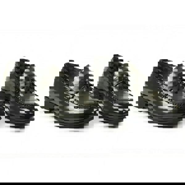 * Braided Chain & Tassel Detail: Features a distinctive braided chain along the moc toe paired with dual tassels, combining classic design elements with modern flair for a sharp, polished look