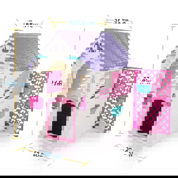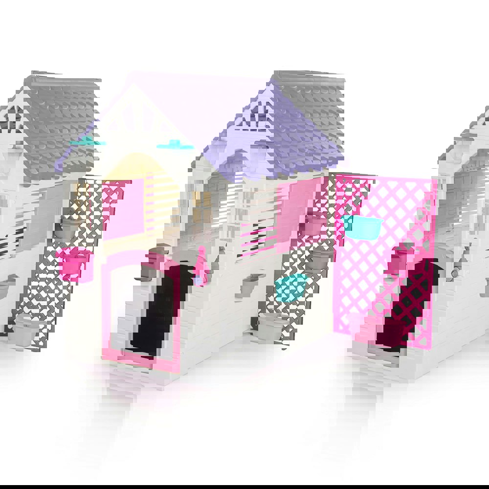 Create a magical space for imaginative adventures with the Dolu Playhouse with Accessories. This charming playhouse, designed for children aged 2 years and up, features an inviting design with white panel-effect walls, a lovely purple tiled roof, and bright pink window shutters. Inside, there’s plenty of room for children to engage in role-play, host pretend gatherings, or simply enjoy having their own special retreat. Crafted from durable, UV-resistant plastic, it’s built to withstand outdoor conditions and provide countless hours of fun in the garden.