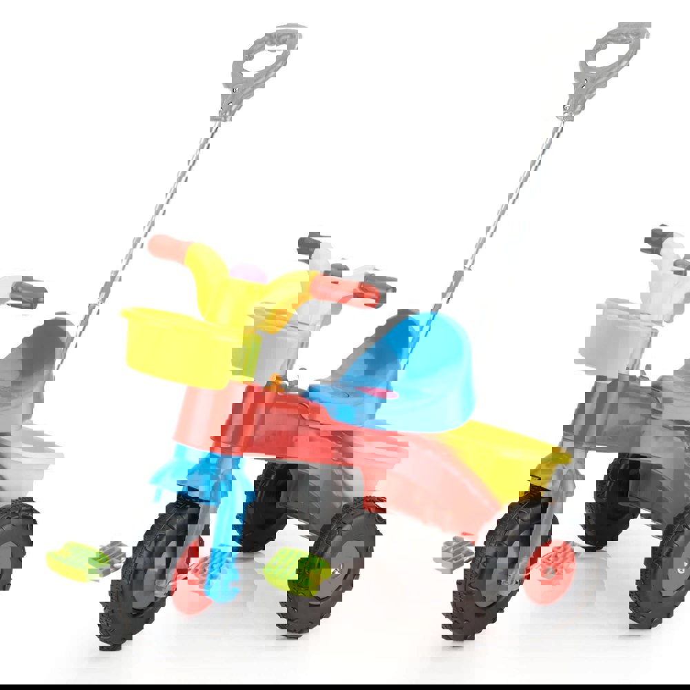 Beautiful, robust, sturdy first trike, finished in bright an bold colours. This Dolu Toddler My First Trike comes complete with a rear parent handle to push, guide and steer their child - this handle can be removed once the child has gained confidence. The trike allows a child to use their feet on the floor for push power, or to pedal to gain motion. The handlebar allows for easy steering, whilst also featuring a horn to beep. Fun for your child to take their favourite toys with them using the front and rear baskets. Suitable for children 2 years old and above.