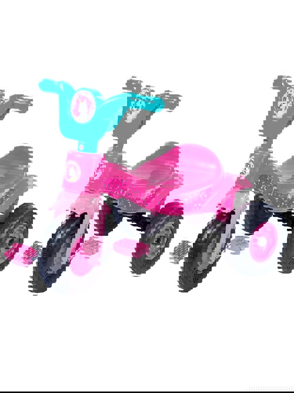 Roam free with their favourite mythical creature beside them. The pedal operated 'Unicorn' themed trike will improve co-ordination and development while putting a smile on their face. A direct drive system on the front wheel means its lightweight while the 3 wheels maintain stability so they can concentrate on mastering the pedalling. With rear carrier for their essentials and multi pink colourway - the only problem will be getting them off of it!
