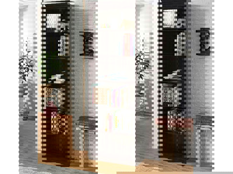 The bookcase from solid pine is a stylish and functional storage solution that will add character to any room. With five adjustable shelves and six spacious compartments this bookcase offers ample space to organize books decorative items and other accessories.