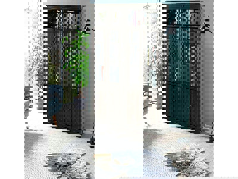 Each bookcase features both glass and wooden doors providing a versatile storage solution