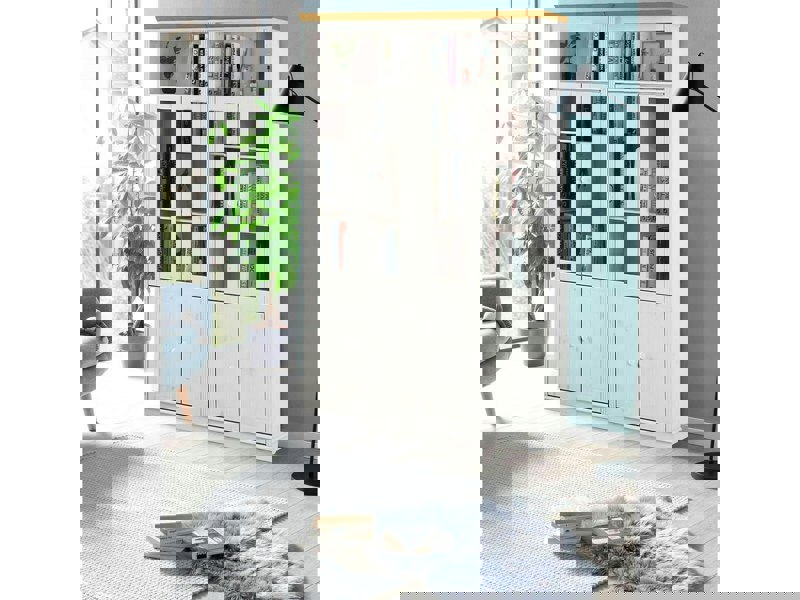Each bookcase features both glass and wooden doors providing a versatile storage solution