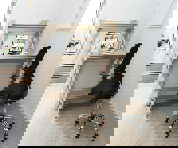 Simple, sturdy and stylish, the Arizona workdesk is ideal for smaller areas, offering huge amounts of storage on a small frame. The beautiful light oak finish features large desk, printer shelf, and raised storage shelf.