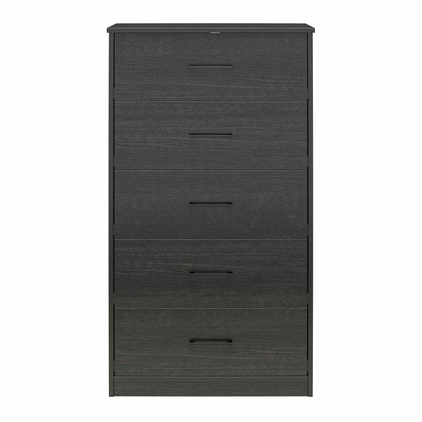 This five-drawer dresser is as simple to put together as it is sleek. Featuring a design that allows for quick and easy assembly by anyone, this piece gives you an elevated look without the hard work. Grooved wooden panels are designed to stay in place so you can effortlessly snap them together and then move on with your day. With clean lines and a timeless silhouette, this dresser boasts generously sized drawer pulls, and a lamination process ensures a consistent white finish throughout. Wide and substantial, this dresser features six spacious drawers that slide smoothly on a metal glide system. Add understated elegance to your bedroom with this casual transitional piece.