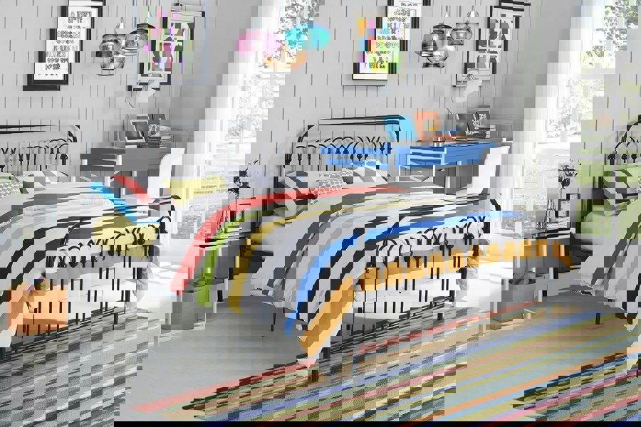 The Novogratz Bright Pop Metal Bed is an impeccable combination of industrial charm and contemporary design. Complete with metal slats, side rails and center legs, this polished simple design adds a graceful feel to any room.