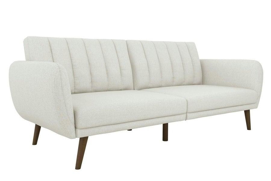 Be embraced by the comfortable cushioning of the Brittany linen Sofa Bed. With its ribbed tufted cushioned back, the Brittany Linen Sofa Bed gives your body all the support you need to sit and relax for hours. The combination of curved armrests and slanted legs work together to provide a unique rounded look that stands out. The linen upholstery adds another element of elegance making this a perfect statement piece for any living space.
