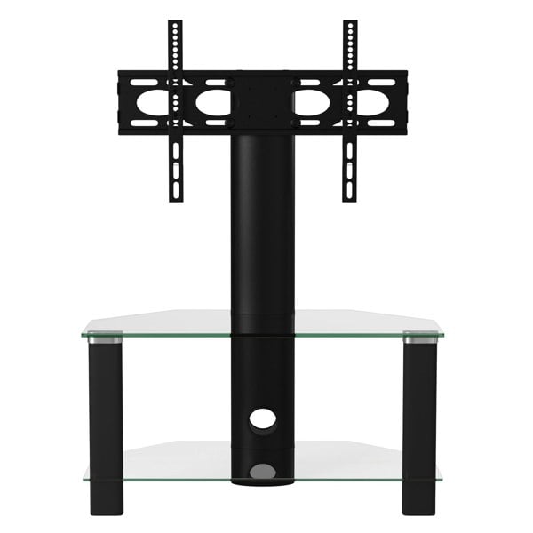 With its simplistic, open design the Century 800 Corner TV stand is both attractive and functional. It features 2 toughened glass shelves and central cable management for mantaining a tidy look.