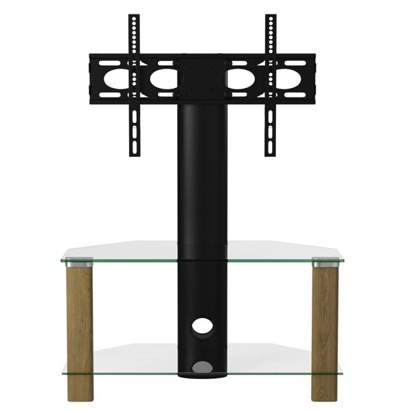 With its simplistic, open design the Century 800 Corner TV stand is both attractive and functional. It features 2 toughened glass shelves and central cable management for mantaining a tidy look.