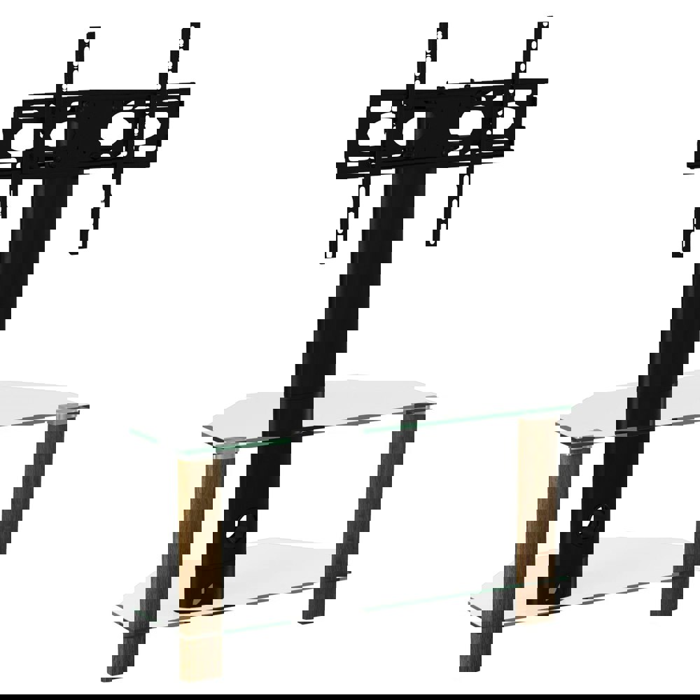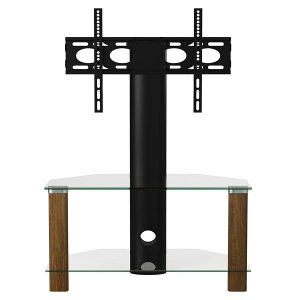 With its simplistic, open design the Century 800 Corner TV stand is both attractive and functional. It features 2 toughened glass shelves and central cable management for mantaining a tidy look.