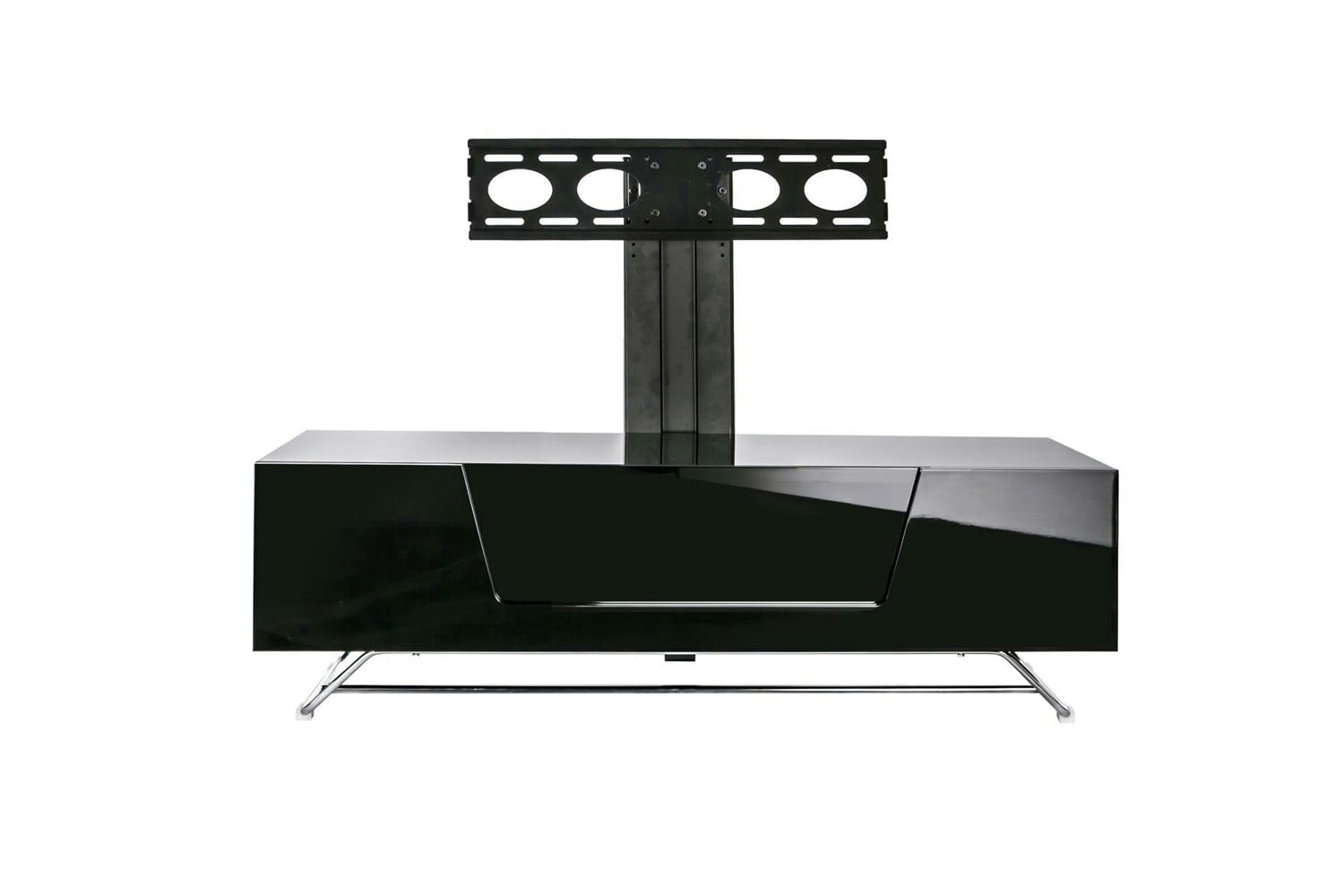 Featuring a coloured high gloss finish clad in matching glass and supported by a discreet steel frame, the Chromium range of TV stand epitomises contemporary furniture designs. The flip-down door is complete with IR friendly glass, soft opening hinge and magnetic catch, and holds a toughened glass shelf and 2 storage compartments. This model comes complete with cantilever TV bracket, to support your television above the cabinet giving a cleaner look and allowing for more storage.