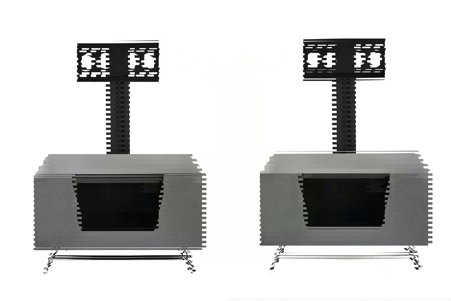 Featuring a coloured high gloss finish clad in matching glass and supported by a discreet steel frame, the Chromium range of TV stand epitomises contemporary furniture designs. The flip-down door is complete with IR friendly glass, soft opening hinge and magnetic catch, and holds a toughened glass shelf and 2 storage compartments. This model comes complete with cantilever TV bracket, to support your television above the cabinet giving a cleaner look and allowing for more storage.