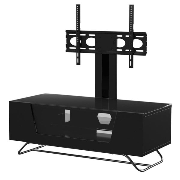 Featuring a coloured high gloss finish clad in matching glass and supported by a discreet steel frame, the Chromium range of TV stand epitomises contemporary furniture designs. The flip-down door is complete with IR friendly glass, soft opening hinge and magnetic catch, and holds a toughened glass shelf and 2 storage compartments. This model comes complete with cantilever TV bracket, to support your television above the cabinet giving a cleaner look and allowing for more storage.
