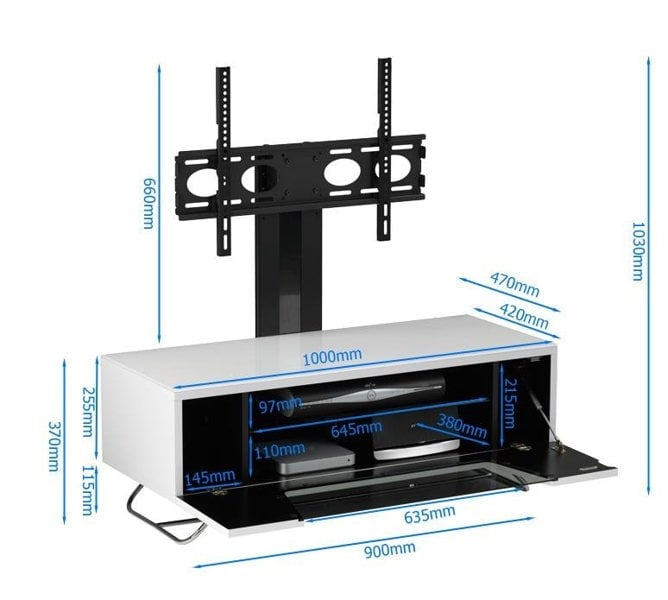 • High gloss enclosed cabinet with matching glass.Soft opening door with magnetic catch.Passive ventilation.Cable management.IR Friendly glass door