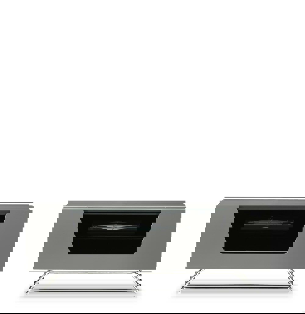 Featuring a coloured high gloss finish clad in matching glass and supported by a discreet steel frame, the Chromium range of TV stand epitomises contemporary furniture designs. The flip-down door is complete with IR friendly glass, soft opening hinge and magnetic catch, and holds a toughened glass shelf and 2 storage compartments.