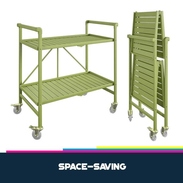 The Cleo Slatted Serving Cart is the perfect kitchen addition, beverage, or snack server to showcase your craft cocktails or buzzworthy appetizers. This Classic beauty features a transitional style and clean lines, a functional accent piece to compliment all the eye candy displayed throughout your abode. If space is tight, simply fold in half and store under a bed or in a closet until the next shindig!