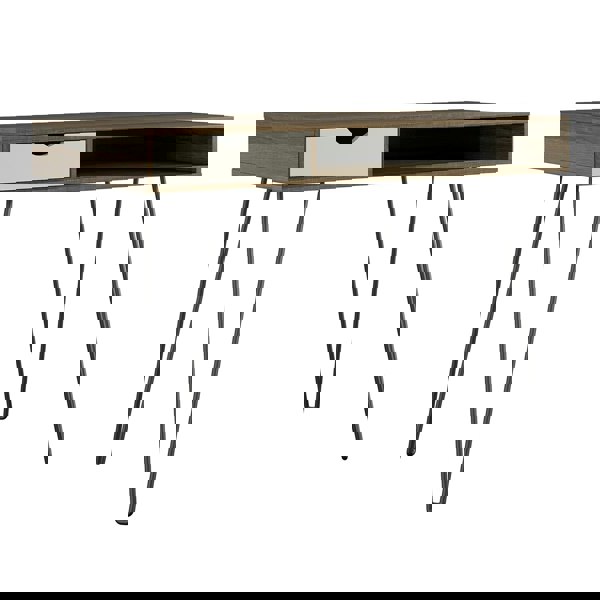 Add some mid-century style to your space with the Novogratz Concord Computer Desk with Storage. Inspired by mid-century design, the classic woodgrain finish on the laminated particleboard pairs with the black metal hairpin legs for a retro twist.