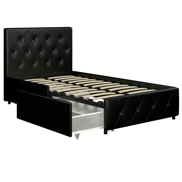 Give yourself the bed you deserve! The Dakota Upholstered Bed with Storage Drawers ticks off all the elements for a perfect bed – style, comfort and functionality. This contemporary and chic bed frame is designed with graceful button tufted diamond patterns on both the headboard and footboard and upholstered in faux leather.