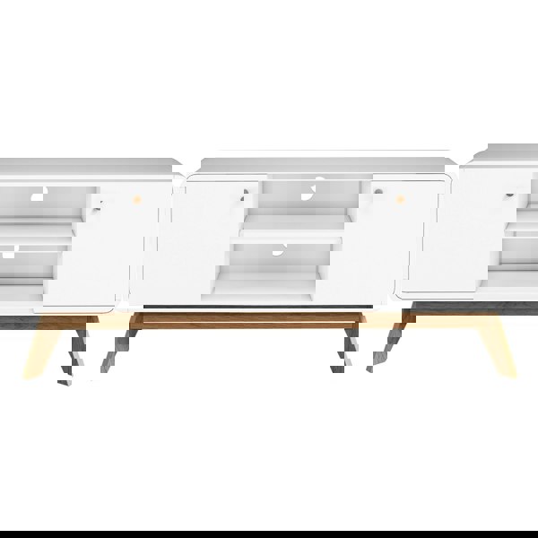 Fill your space with the curvy, "Skandi-Style" of the Cassie Range of furniture pieces. The Loft24 Cassie 2 Door TV Stand boasts modern rounded corners, 4 compartments to home all of your favourite AV accessories. Avalaible in numerous colours.