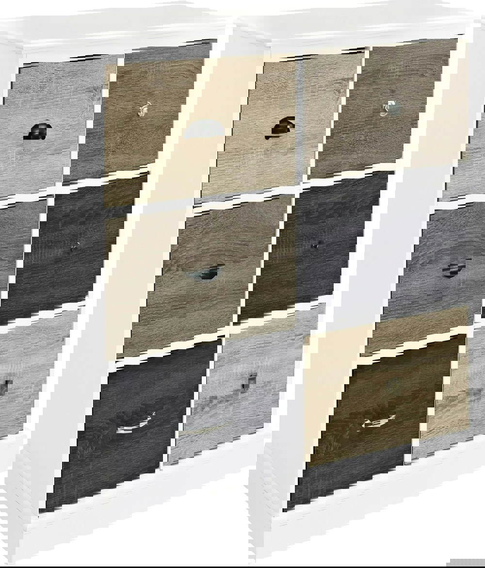 Transform your living room, bedroom or office with the Mercer 6 Drawer Storage Cabinet with Multicolored Fronts. The cabinet features 6 spacious drawers, each finished with a slightly different color to create a sophisticated look for a modern or transitional scheme. Additionally, 6 knobs of varying styles are interchangeable to help fashion a customized look. In the living room or office, utilize the storage space to conceal books, DVDs, glassware and toys. You can also use this unit in the bedroom to stow away clothing and blankets.