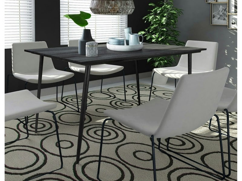 Elevate your dining experience with this stylish rectangular dining table, expertly crafted from durable MDF and supported by four sleek, powder-coated metal legs. Its modern design seamlessly complements any décor, while the spacious tabletop provides ample room for family gatherings and entertaining. It's effortlessly mixed and matched with different decor styles. Easy to assemble.