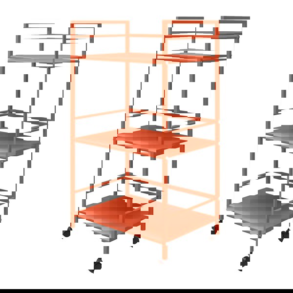 From the living room to the bathroom to the kitchen and beyond, the Novogratz Cache Metal Rolling Cart is a great addition to your home. Featuring a minimalistic style, the Cart has 3 large shelves. Each shelf has 3 wrap-around bars and can hold up to 20 lbs.