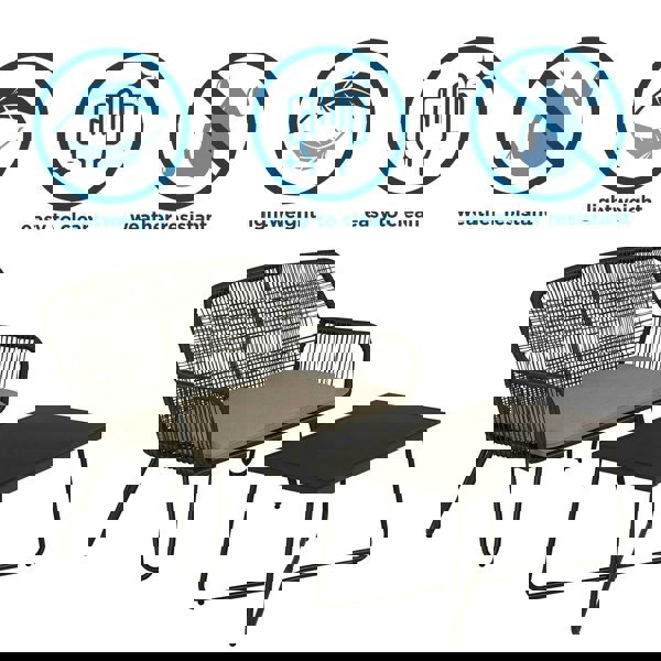 Marli loves to gossip with friends and family in front of a tray of pimento cheese sandwiches and a pitcher of sangria. This conversation set is the focal point of any outdoor space with its comfortable love seat and a coffee table that’s all ears.