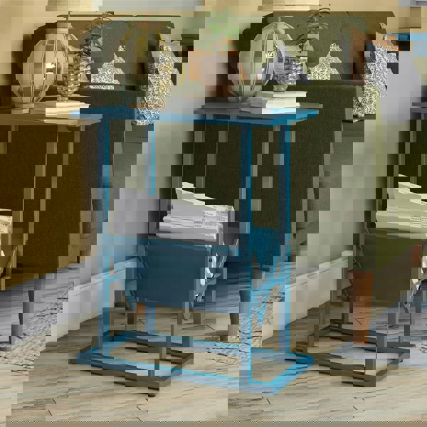 Give your living room a fun and contemporary look with the Novogratz Regal End Table. The light walnut woodgrain or blue finish on the laminated particleboard pairs with the bronze or blue metal frame for a fun mid-century modern feel.