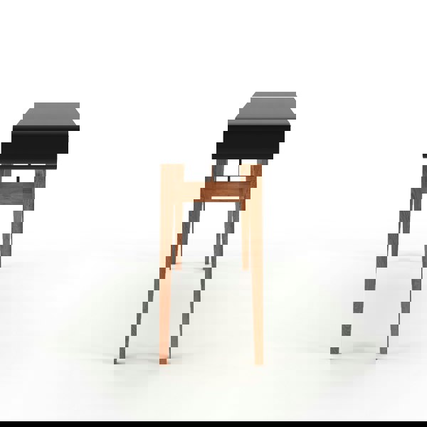 Stylish but practical, the Pevensey desk is ideal for the casual home office user. Featuring 3 large under desk drawers the Pevensey offers plenty of storage, whilst the angled wood legs and curved edges of the worktop give a stylish look to this modern laptop desk, perfectly finished by the smooth black desktop combined beautifully with the wood frame.