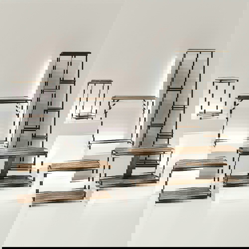 Weathered Oak finish. Self assembly required. Stylish asymmetrical design. Matching furniture items also available. Display your fabulous memories and books