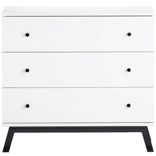 Add a contemporary feel to your child's bedroom or nursery with the Little Seeds Rowan Valley Lark Urban 3 Drawer Dresser. The chassis is made from laminated particleboard that is finished in a crisp painted finish with contrasting metal detail for a contemporary look. The durable metal drawer slides will last for years and are made with built-in stops for safety. The dresser can be converted to a Changing Table by adding the topper (supplied with unit). Simply remove the Changing Table Topper when your child outgrows it to convert it back to a youth dresser.