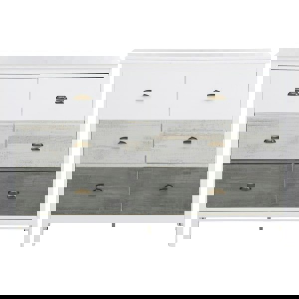 With the chest of drawers you have plenty of storage space for everyday things such as shirts laundry exercise books books or other accessories. It is therefore the perfect piece of furniture for every living space whether in the bedroom, in the hallway or living room. Lots of things can be stored dustfree in the drawers with shell handles. The robust wooden chest of drawers can be easily combined with existing pieces of furniture and is therefore an ideal side piece of furniture for your living area or dining room.