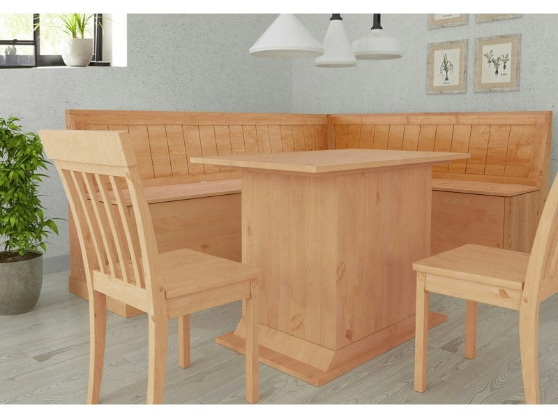 The corner bench with its practical storage options exudes a natural flair in your dining room furnishings. It complements your interior in the trendy country style and is designed with beautiful woodlook accents. With its restrained colors the bench can be easily combined with your existing furnishings. Beneath the seat there is useful storage space for cushions textiles or home accessories for example. The bench is made of high quality solid pine.