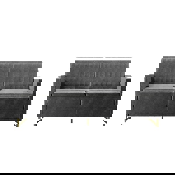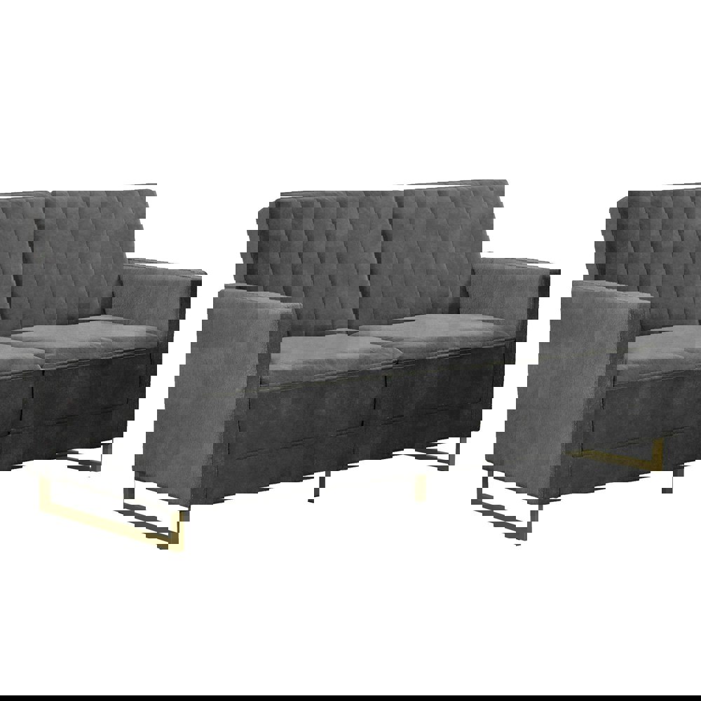The Novogratz Skylar Coil Sofa Bed stands out from the rest and makes a statement! Modern and trendy, the Sofa Bed is designed with a ribbed tufted cushioned back that features vertical stitching details in the backrest. The Skylar is upholstered in rich velvet and sits on trendy gold powder coated metal legs to add a touch of modern glam to your room décor. This upholstered Sofa Bed is constructed with pocket coil seating to offer optimal comfort for you and your guests during a movie night. This versatile Sofa Bed is also the perfect solution for accommodating overnight guests as its multi-functional split-back design allows you to independently recline the backrest between three positions: sitting, lounging and sleeping. Available in a variety of colors, the Novogratz Skylar Coil Sofa Bed is a great option if you want a piece that will instantaneously add functionality and personality to your home. What are you waiting for?