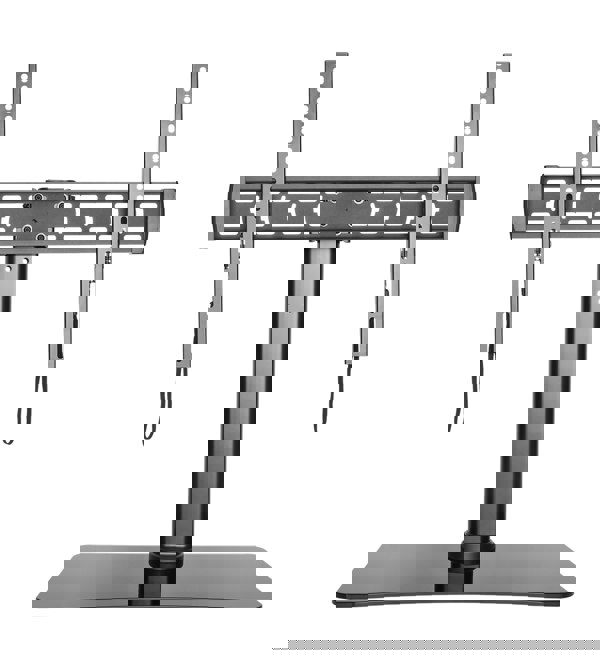The Alphason Table Top TV stand offers a stylish mounting solution for televisions up to 55”. A perfect addition to an exixting TV stand or table, the raised TV allows space for soundbars/AV equipment on the black glass base. Featuring 3 height adjustable settings and cable management, the bracket can tilt and swivel for optimum viewing.
